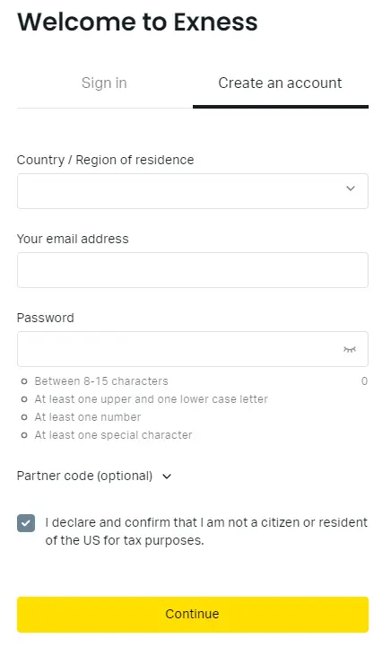 在Exness开户是一个简单的过程,可以通过三个简单的步骤完成: